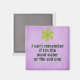 Magnetos Engraçados, "Não consigo me lembrar se sou a boa irmã ou a mau" com fundo roxo, fonte verde e flor retrô.