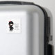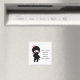 Ninja de desenho animado bonito está vestida de preto, mas para um arco cor-de-rosa sobre sua máscara de cabeça. A espada tradicional japonesa katana pode ser vista colada sobre o ombro, também colorido cor-de-rosa.