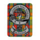 Crachá da crista escocesa Clan Buchanan e texto sobre fundo tartano.
