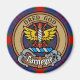 Crachá da crista Clan Carnegie rodeado por uma correia e fivela sobre fundo tartano. Custom Text.