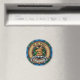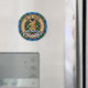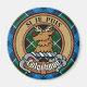 Crachá da crista Clan Colquhoun rodeado por uma correia e fivela sobre fundo tartano. Custom Text.