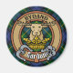 Crachá da crista Clan Gordon rodeado por uma correia e fivela sobre fundo tartano. Texto personalizado.