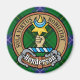 Crachá da crista Clan Henderson cercado por uma correia e fivela sobre fundo tartano. Custom Text.