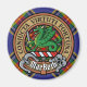 Crachá da crista Clan MacBeth cercado por uma correia e fivela sobre fundo tartano. Texto personalizado.