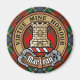 Crachá da crista Clan MacLean rodeado por uma correia e fivela sobre fundo tartano. Custom Text.
