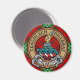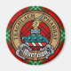 Crachá da crista Clan Morrison rodeado por uma correia e fivela sobre fundo vermelho-tartan. Texto personalizado.