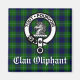 Crachá da crista de Clã Oliphant escocesa e texto sobre fundo de tartã