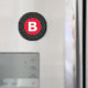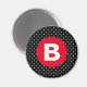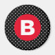 Classic black and white polka dot pattern with big red circle in the center to add your initial.