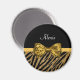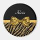Sua adolescente se sentirá imersa no luxo feminino com este designer de ouro e ímã preto de zebra brilhante com uma fita cintilante de sequelas amarrada em um arco luxo. Personalize este design de moda de impressão de animais brilhantes e reluzentes adicionando seu nome. Imagem impressa plana, não brilho real ou fita.