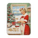 Numa cozinha confortável e coberta de neve, a Sra. Claus é capturada no meio de assar de férias. Vestida com um vestido vermelho festivo com capas aparadas de pele, e um avental correspondente, ela sorri muito bem enquanto prepara um novo lote de biscoitos. A cena é cheia de alegria natalícia, completa com uma árvore maravilhosamente decorada, enfeitada com canas doces e ornamentos vermelhos, enquanto a neve suavemente cai fora da janela, adicionando à atmosfera mágica da estação.