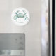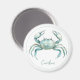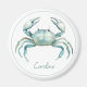 This round magnet features a beautiful coastal crab in soft watercolor shades of blue and green on a solid white background. Personalize with your choice of name or special text. Great for personalized party favors and gift bags.