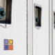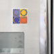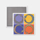 Quatro cobras azuis mordem seus contos nesses quadrados de azul, vermelho e laranja.