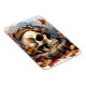 O ímã apresenta trabalho de arte de aquarela de um cobra marrom e preto envolto em um crânio humano com uma estética florestal de outono. As folhas de queda, réptil escorregador e crânio estão todas em um esquema de cor quente e neutro de laranja, vermelho, marrom, amarelo escuro e bege. Perfeito para aqueles que amam répteis — particularmente cobras — a estação do outono, e arte mórbida. Incluindo herpetólogos! Também excelente para o Halloween.