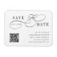 Este ímã de anúncio de salva data com letra cursiva romântica é perfeito para um casamento simples. O design minimalista em preto e branco apresenta letras elegantes e românticas em caligrafia giratória com um código QR.