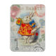 O Coelho Branco Clássico de Alice no País das Maravilhas - Aventuras de Alice no País das Maravilhas mostra o coelho branco. Essa imagem clássica do coelho branco é do livro original, mostrando o coelho soprando um chifre, vestindo um uniforme de corações vermelhos. O coelho branco é visto através da história de Alice no País das Maravilhas, do buraco do coelho, ao Partido do Chá Louco com o Chapéu Louco. O alcaçuz na colagem das terras maravilhosas é uma bela imagem para convites de festas e presentes. Escrito por Lewis Caroll em 1865, Alice cai no buraco do coelho e está envolvida numa maravilhosa terra de fantasia.