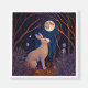 Um coelho gosta da lua de cheio na floresta. Esta é uma colaboração entre mim e a IA. Combina elementos da Arte Deco e da arte popular em azul e laranja.