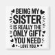 Este design capta a dinâmica divertida e amorosa entre irmãs. Com a citação "Ser Minha Irmã É Realmente O Único Presente Que Você Precisa - Ame Você", é uma maneira humorada, mas sincera, de expressar afeto. É perfeito para uma irmã que aprecia uma boa risada e sabe o verdadeiro valor dos laços entre irmãos... "Irmã Engraçada Presente: 'Ser minha irmã é tudo que você precisa' Cotação, amor você, coração, citações de amor, irmã engraçada, amor, aniversário, aniversário da irmã, ser parente comigo é realmente a única que você precisa, melhor irmã, para irmã, feriado, ser parente, apenas, ser minha irmã é "Presentes de Aniversário para Mulheres Amiga Mãe Irmã Bestie, Presentes de Natal de Casamento de Dia de as mães para Mulheres"