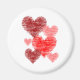 Colagem de Corações com uma sensação de vintagem desbotada. Uma variedade de tamanhos e tons de corações vermelhos.