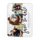 Esta imã salve a data de 3 fotos apresenta um belo roteiro pintado à mão, em espírito livre. Adicione uma foto adicional e um texto personalizado ao verso.