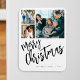 Na moda moderno Feliz Natal preto e branco script de caligrafia manuscrito preto e branco 3 fotos da família simples manejo de anjo festivo com seu texto personalizado.