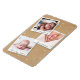 Com 3 fotos em estilo de câmera instantânea em um fundo rústico kraft com corações azuis. Personalize com as fotos do bebê, nome e estatísticas de nascimento.