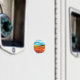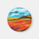 Colorida paisagem abstrato de colinas e céu em cores amarelo, vermelho, verde e azul.