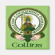 O seu crachá de lema do clã Collins mostra o famoso símbolo de cladagh irlandês, Rua Patrick e moluscos tradicionais com o seu lema histórico da antiga família, de cor gloriosa e vibrante.