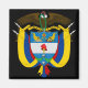 Casaco de armas da Colômbia. A casaco de armas da Colômbia contém um escudo com numerosos símbolos. No topo do escudo está um Condor Andino segurando uma coroa de azeitona e o condor simbolizando a liberdade. O lema nacional, Libertad y Orden (Espanhol para a Liberdade e a Ordem), encontra-se num pergaminho entre o pássaro e o escudo, a preto, sobre fundo ouro. O condor é representado virado para a frente com suas asas estendidas e olhando para a direita.