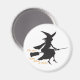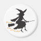 Uma silhueta de uma bruxa sobre uma vassoura com as palavras em laranja "Oh, sim, eu posso dirigir uma vara."