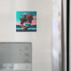 A skull head has been completely colored in an abstract style to bring you into the world of creativity and surreal design, in the style of photo-realistic landscapes, tropical landscapes, futuristic realism, pixelated realism, light crimson and sky-blue, surrealistic dreamscapes