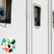 Padrão legal, único, moderno, de ilustração de abstrato urbano feito com formas geométricas circulares em cores azul, vermelho pastel, amarelo e preto. Trabalho de arte de design gráfico lúdico, ousado, vibrante, colorido e moderno.