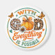 Design cor e pacífica com uma cena de outono/outono com borboletas e uma abóbora. O texto colorido inspiracional diz: "Com Deus tudo é possível". Esse design está disponível em uma grande variedade de produtos.