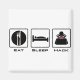 Coma, durma e Hack Tudo! Esta é uma brincadeira sobre como alguém vive sua vida e filosofia. Todos nós gostamos de encontrar formas de como as coisas funcionam, além da sua design, legal, de caça ao inseto, ou de lazer no Hack The Box. Faz um presente excelente para os amigos de segurança de TI.