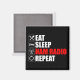 Coma. Durma. Rádio Ham. Repita. O acessório engraçado do Amateur Ham Radio seria um presente de excelente para um operador de rádio presunto hobbista vestir na sua cabana de presunto. Você adora operar rádios de ondas curtas e presunto como hobby? Você tem uma antena no telhado ou no quintal? Você conhece todas as melhores frequências? Então esta design é para você! Tem um gráfico de uma torre de rádio de transmissão.