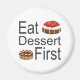 Dois bolos com fruta decorando as cerejas superiores - cerejas para um e morangos para o outro. "Coma Deserto Primeiro". Palavras para os felizes