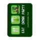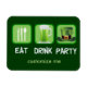 Uma Rua legal. O imã do dia de Patrick com as palavras Comer Bebida e Festa ao lado do símbolo para comer, uma caneca de cerveja verde, e uma Rua. O chapéu de duende do dia de Paddy.