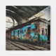 Estação de trem abandonada com arte de grafite.