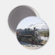 Comboio antiquado que atravessava o White Pass até Skagway, na Colúmbia Britânica com uma montanha coberta de neve ao fundo. Reimpresso neste ímã.