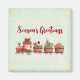 Magnet com uma imagem fofa e adorável feita com aquarelas. Papais noeis que conduzem um trem cheio de brinquedos para todas as crianças do mundo.