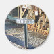 Um design de arte das ramificações de um antigo estaleiro ferroviário a vapor mostrando as linhas de caminho de ferro e as rodas de carruagem do comboio de mercadorias, juntamente com um sinal de "assobio".