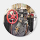 Os motoristas de comboios a vapor veem na plataforma de um comboio a vapor da linha de Talllyn, no País de Gales. O bronze brilhante e o vermelho vívido de alguns dos controles são um bom exemplo da habilidade das pessoas que voluntariamente dão seu tempo para a preservação desses pequenos trens. Todos ganharam vida com a excelente qualidade de impressão de Zazzle. Presentes para o entusiasta do trem a vapor.