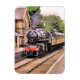 Um design de arte de um belamente restaurado trem a vapor e carruagems.