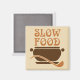 As palavras Comida lenta com pote de sopa e design de escada. Comemore o cozinhar doméstico e a comida lenta com este design retrô.