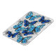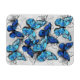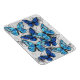 Composição vertical de borboletas de morfo realistas, azuis e brancas sobre fundo texturizado de cinzas. Borboleta azul Morpho.