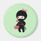 Ninja linda de desenho animado vestida de preto, mas para um arco rosa em cima de sua máscara de cabeça. A espada tradicional japonesa de katana pode ser vista amarrada nas costas dela, é também cor-de-rosa. A garota está segurando uma cesta de compro rosa.
