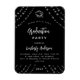 Um fundo preto decorado com estrelas falso de prata e um boné. Personalize e adicione um nome e detalhes da parte. O texto Graduação e o nome são escritos com um script de estilo moderno, escrito à mão.