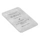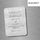 Um convite de casamento magnético moderno e elegante. Um fundo com aspecto fino de prata decorado com brilho falso, faíscas. Personalize e adicione seus nomes e detalhes do casamento. Letras pretas coloridas.