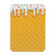 Sorvete de baunilha pingando em um cone de waffle com borrifadas multicoloridas.
