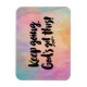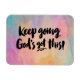 Lembre-se de confiar em Deus com esta design da Tipografia moderna com palavras em um roteiro de caligrafia negra, "Continue Indo. Deus tem isso!" sobre fundo de aquarela colorido.