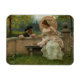 Esta design apresenta uma pintura do artista italiano Federico Andreotti (1847-1930). Mostra uma jovem elegante sentada num banco de pedras num parque. Ela está falando com seu suitor masculino, que está se agachando ao seu lado. Os dois amantes estão a ter uma conversa romântica longe dos olhares chorosos da família e dos amigos. A senhora está vestindo um vestido branco em moda, e ela está segurando um parasol para se proteger do sol. O senhor também está vestindo um traje histórico apropriado à época. No banco ao lado da jovem está um livro, talvez contendo poesia amorosa, e algumas rosas cor-de-rosa, que podem ter sido dadas como um dado pelo seu admirador. Os casais estão cercados por lindas árvores verdes. Há também um lago ou rio correndo pelo parque.